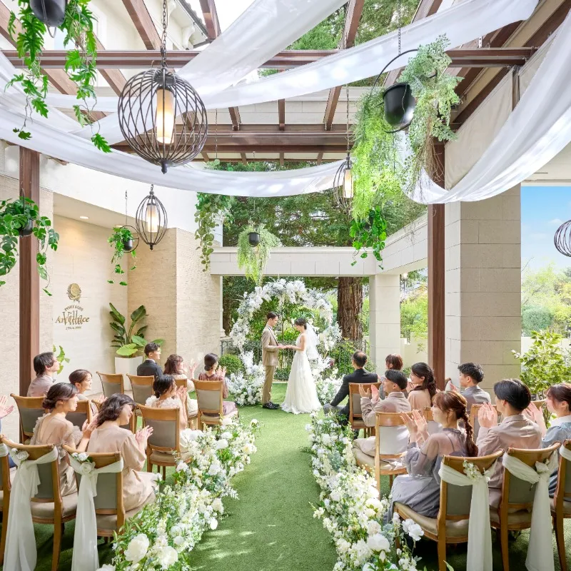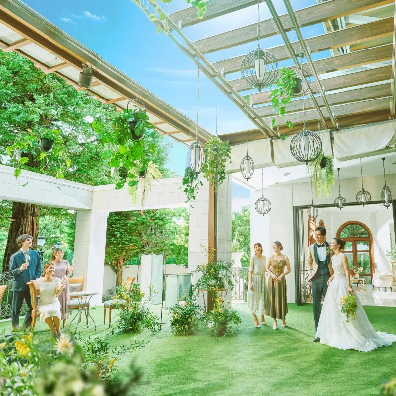 【NEW挙式スタイル登場*ガーデン挙式】緑溢れる貸切一軒家で可動式の屋根が付いた全天候型ガーデン♪ペットも参加可能で披露宴会場内もOKで安心!大切なゲストと過ごすアットホームウエディングが叶う!