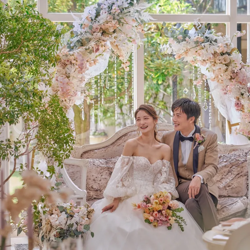 【ご成約特典】デザイナーズフラワーへのランクアップを無料でプレゼント。お花にこだわりたいおふたりは必見【来館特典】料理長自慢の1皿の無料試食ご招待。おもてなしの味を体験いただけます。